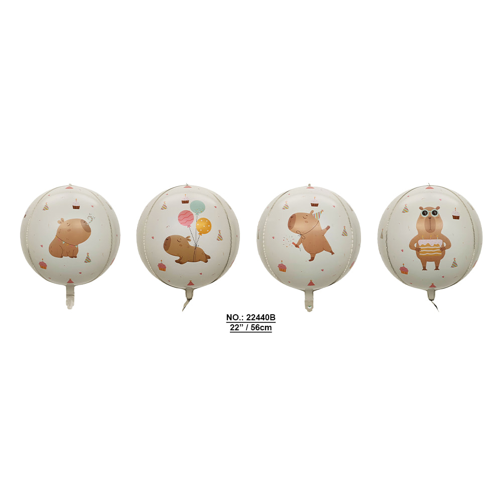 | 22440B | 22” / 56cm | Foil (Mylar) | 4D Balloon | 4 Capybara Cartoon Prints | Party Decoration, Event Supplies |