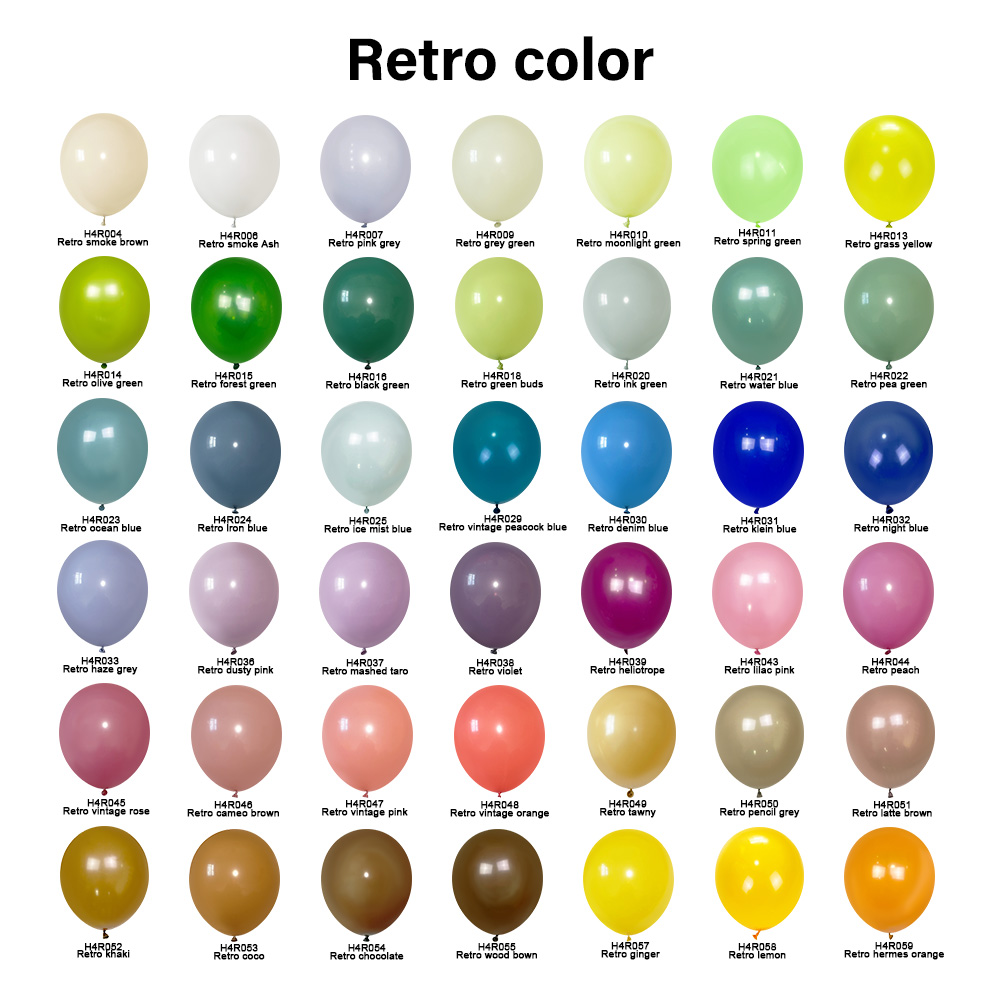 OEMStep into a nostalgic color world with our Retro Color Latex Balloons collection. Featuring 42 unique retro-inspired shades, this series captures the warmth and sophistication of vintage aesthetics — from earthy terracottas and olive greens to dusty blues, burnt oranges, and deep browns.